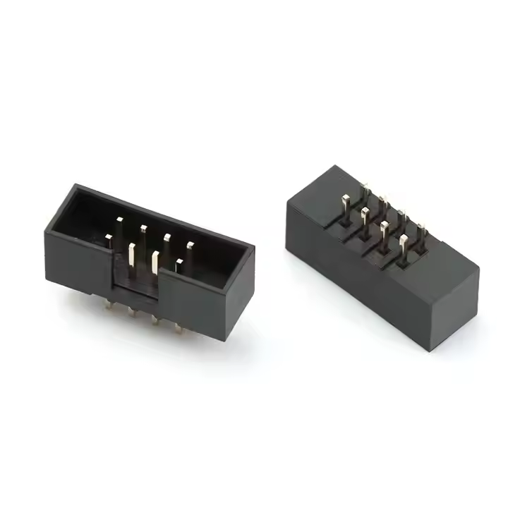 A box header connector, also known as a shrouded header, is a male pin connector with a plastic shroud surrounding the pins. This shroud guides mating connectors (like IDC sockets) to ensure accurate alignment, prevents pin damage, and often includes keying or polarization features to avoid mis-mating. Typically used in board-to-board or wire-to-board applications, box headers are available in various pitches (e.g., 2.54mm, 2.0mm) and pin counts, making them ideal for electronics, automotive, and industrial systems.